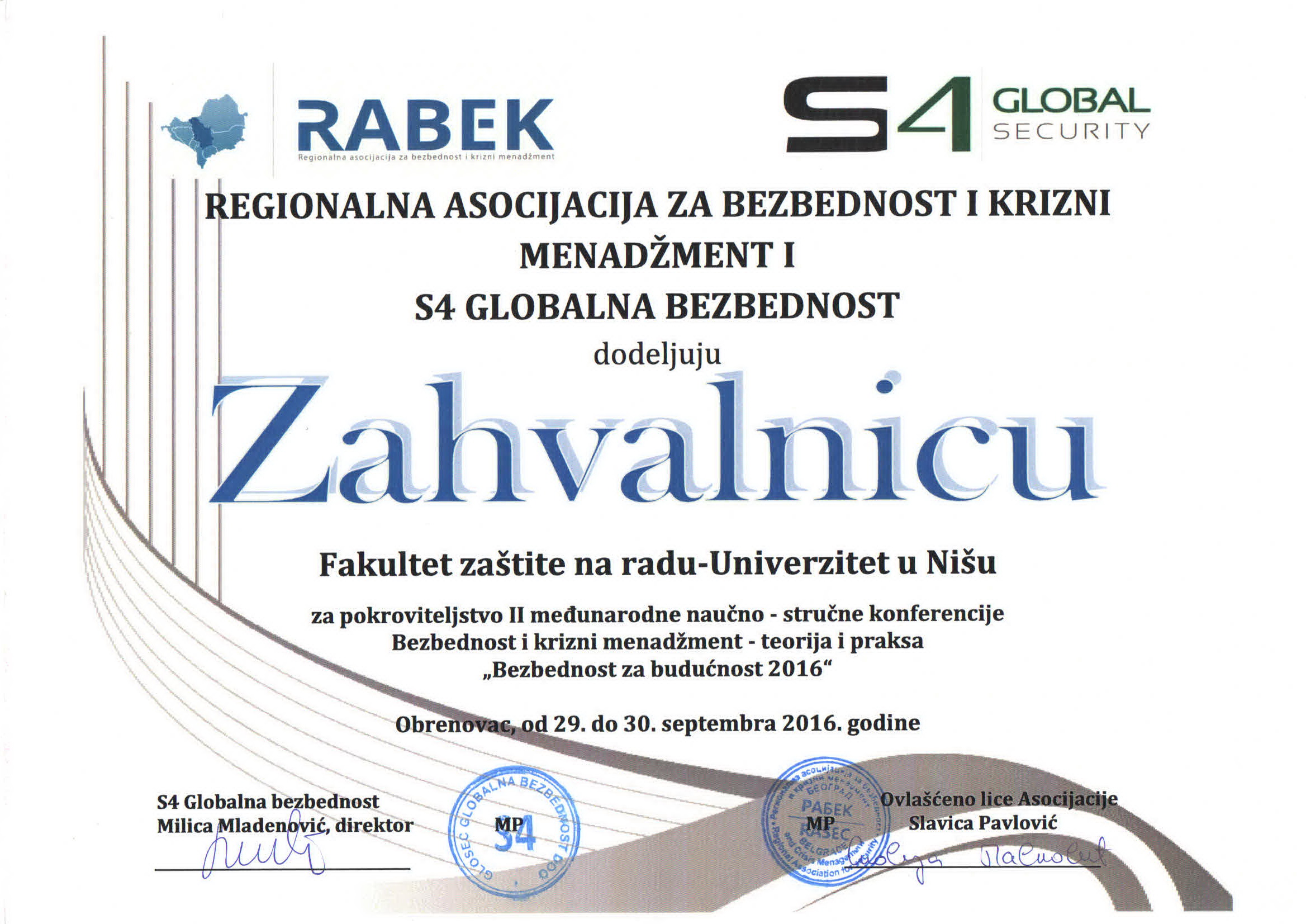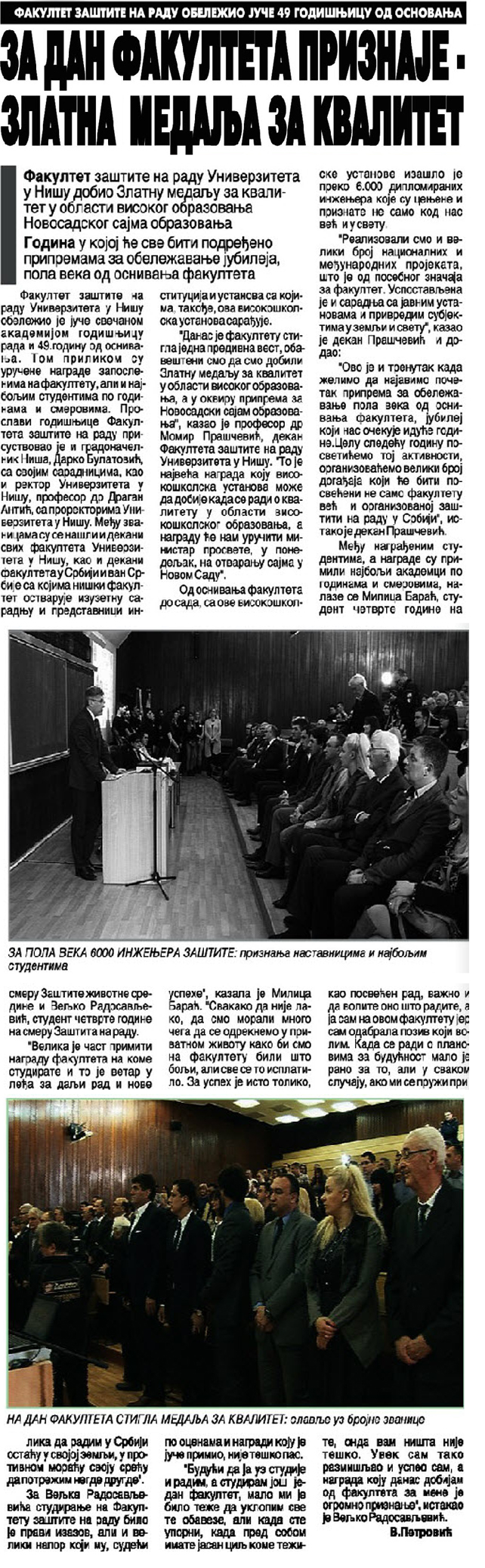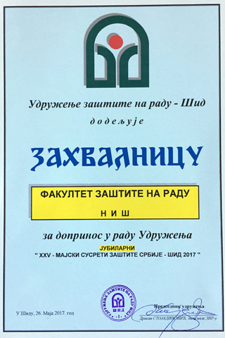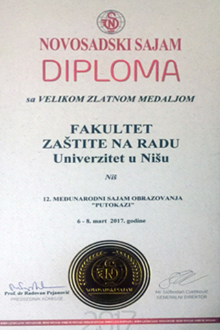 на Факултету заштите на раду у Нишу, додељен одговарајући број